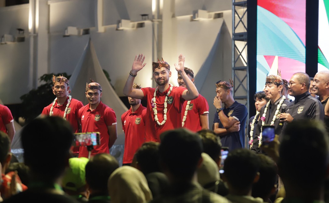 “Kita kibarkan bendera merah putih dan Palestina untuk mengatakan kita saudara sampai dengan yaumil qiyamah dan mendukung kemerdekaan satu dengan lainnya. Saya tunggu hadirnya di Stadion GBT,” seru Wali Kota Eri Cahyadi, saat meet and greet dan gala dinner Timnas Indonesia dan Palestina di halaman Taman Surya, Minggu (11/6).