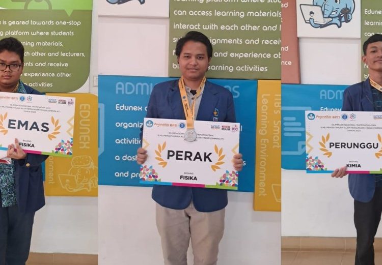 Tiga mahasiswa ITS yang berhasil menyumbangkan prestasi tersebut adalah Izzudin Ali Yafi yang meraih medali emas di bidang Fisika, Zamrori Sudi Maulana meraih medali perak di bidang Fisika juga, dan Andhika Fathurrohman yang meraih medali perunggu di bidang Kimia. “Pada ONMIPA-PT tahun ini terdapat peningkatan yang positif dengan raihan medali emas yang sudah cukup lama tidak didapatkan ITS,” ungkap Koordinator Kegiatan ONMIPA-PT 2023 dari ITS Dr rer nat Bintoro Anang Subagyo SSi MSi.