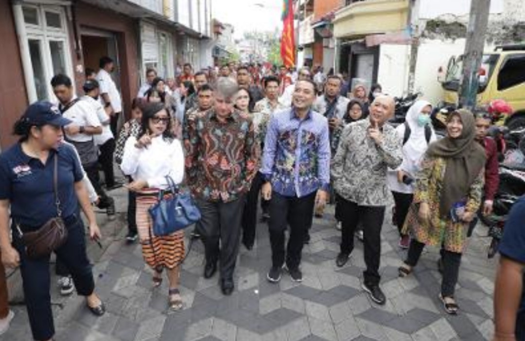Di kesempatan ini, Eri Cahyadi turut mengajak Menteri Koperasi dan UKM Republik Indonesia (RI) Teten Masduki bersama Owen Jenkins turun bersama, menilik industri kreatif hasil kerjasama sister city antara Kota Surabaya dengan Kota Liverpool di kawasan Dolly. “Hari ini kami melihat (hasil) yang sudah dilakukan dari hubungan sister city antara Surabaya dan Liverpool di Dolly. Bersama Pak Menteri (Teten Masduki) melihat beberapa titik yang sudah kita kolaborasikan dengan sister city Liverpool,” katanya..