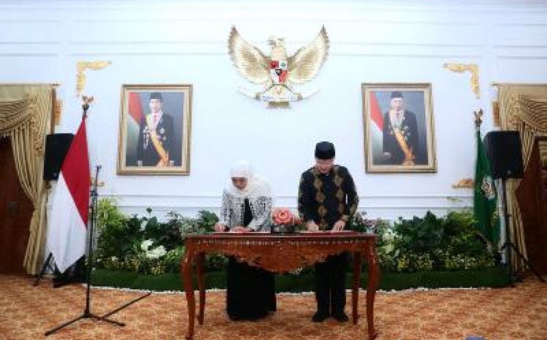 SURABAYATODAY.ID, BENGKULU – Mengawali misi dagang dan ivestasi di Provinsi Bengkulu, Gubernur Jawa Timur Khofifah Indar Parawansa bersama Gubernur Bengkulu Rohidin Mersyah menandatangani Nota Kesepahaman atau MoU di Ruang Garuda, Gedung Daerah Balai Raya Semarak, Bengkulu, Minggu, (2/7).