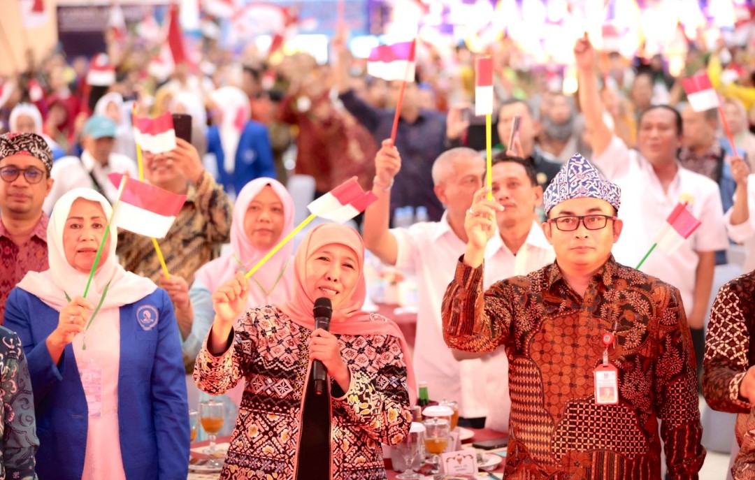SURABAYATODAY.ID, BENGKULU – Di sela-sela pembukaan kegiatan misi dagang, Gubernur Jawa Timur Khofifah Indar Parawansa mengajak masyarakat menyanyikan lagu berjudul bendera karya band Coklat. Hal ini dilakukan bersamaan dengan pembukaan misi dagang Ptovinsi Jawa Timur dengan Provinsi Bengkulu di Grage, Bengkulu, Senin (3/7).