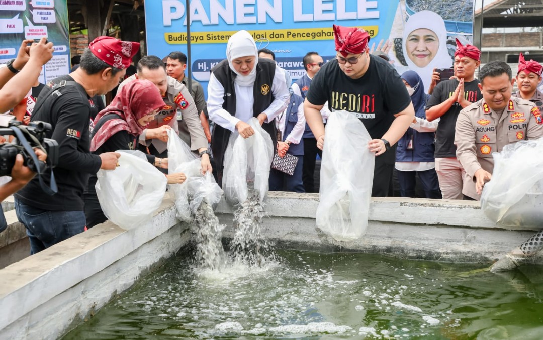 Hal ini disampaikan Gubernur Khofifah usai melakukan panen 1,6 ton lele mutiara dengan sistem sirkulasi air di Peternakan Republik Lele, Desa Tulungrejo Pare Kab. Kediri, Kamis (6/7).