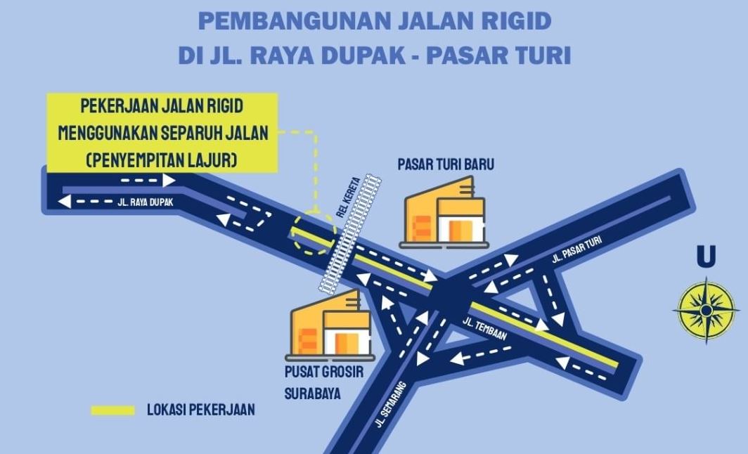 Ia menjelaskan, selama proses pengerjaan betonisasi Jalan Dupak Rukun, akan dilakukan rekayasa arus lalu lintas di sejumlah ruas jalan. Mulai dari kawasan Tanjungsari, Romokalisari dan Perak.