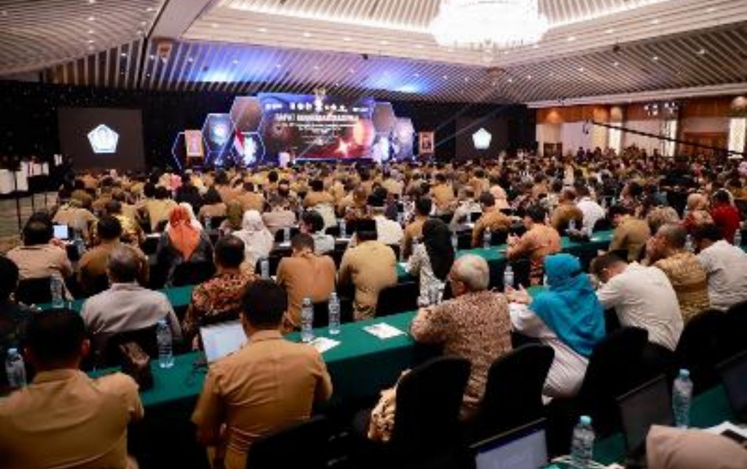 Suasana Rapat Koordinasi Nasional Kick Off Pelaksanaan Program Penguatan Pemerintahan dan Pembangunan Desa Tahun 2023 di Grand Sahid Jaya Hotel, Jakarta.