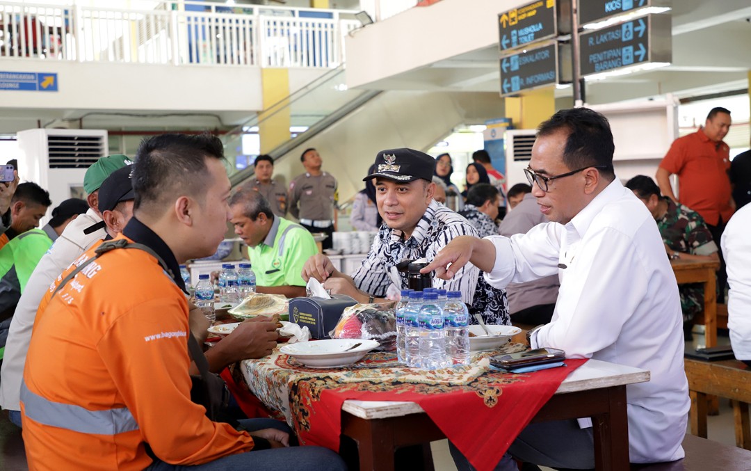 SURABAYATODAY.ID, SURABAYA – Wali Kota Surabaya Eri Cahyadi mendampingi kunjungan Menteri Perhubungan Republik Indonesia (Menhub RI) Budi Karya Budi Karya Sumadi, di Terminal Purabaya Sidoarjo, Jumat (14/7). Dalam kunjungannya kali ini, Menhub RI Budi Karya Sumadi bersama Eri Cahyadi membicarakan soal rencana pembangunan jalur transportasi kereta api (KA).