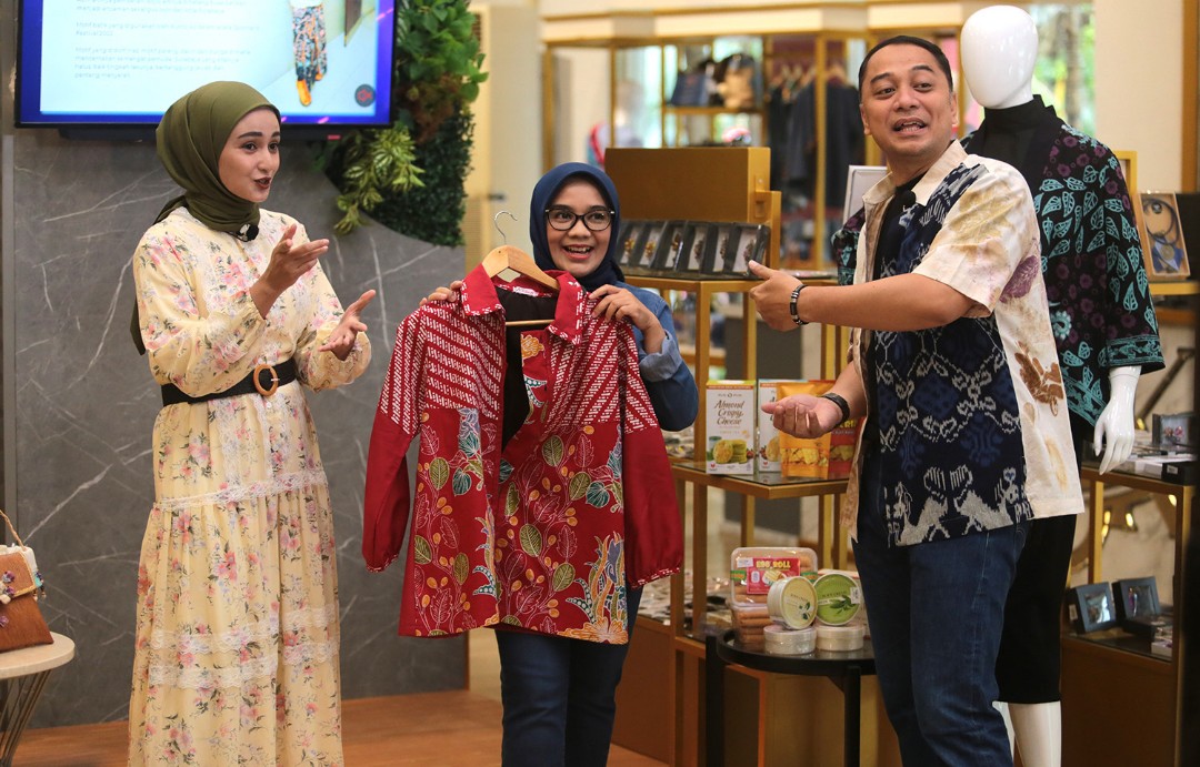 Ketua Dewan Kerajinan Nasional Indonesia (Dekranasda) Surabaya Rini Indriyani bersama Wali Kota Surabaya Eri Cahyadi di Surabaya Kriya Gallery.