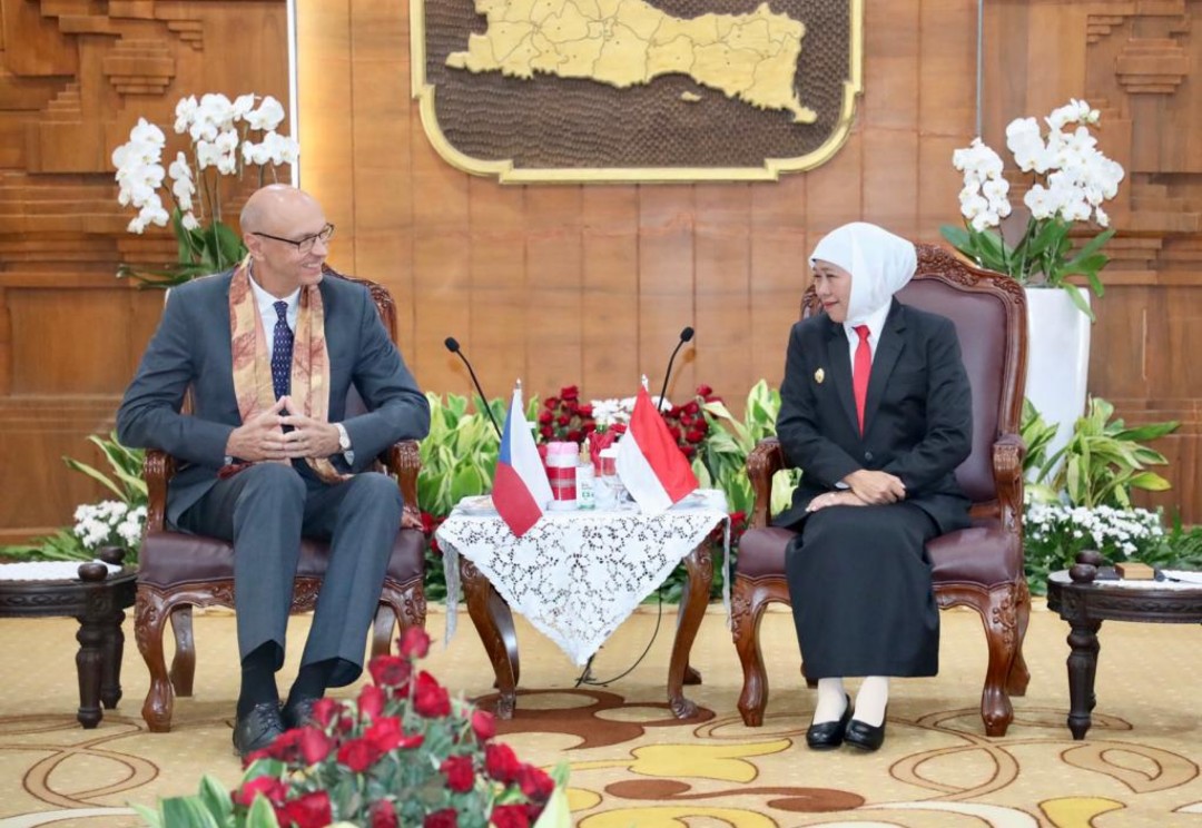 SURABAYATODAY.ID, SURABAYA – Gubernur Jawa Timur Khofifah Indar Parawansa menerima kunjungan Duta Besar (Dubes) Republik Ceko untuk Indonesia, Jaroslav Doleček, di Gedung Negara Grahadi Surabaya, Kamis (20/7).