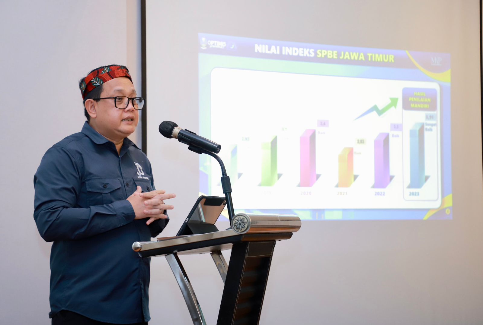 Ia menjelaskan, dalam hal penguatan kebijakan Gubernur Jawa Timur telah mengeluarkan Surat Keputusan (SK) Gubernur Jatim no. 188/1016/KPTS/013/2022 tanggal 30 Desember 2022 tentang Arsitektur dan Peta Rencana SPBE Pemerintah Provinsi Jawa Timur tahun 2023-2024.