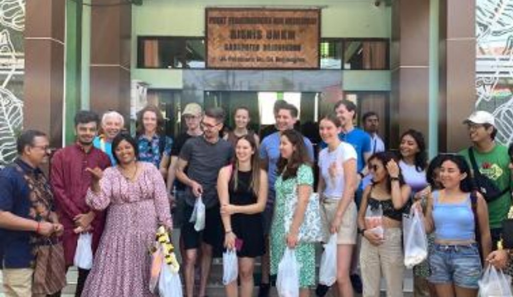 Di halaman gedung, berjajar para pelaku ekonomi kreatif yang dengan semangat menyambut para delegasi dari empat negara itu, yakni dari Slovenia, India, Uzbekistan, dan Meksiko. Mereka dengan bangga memamerkan beragam produk unggulan, mulai dari oleh-oleh khas Bojonegoro berupa ledre, mie pangsit buah melon, hingga keindahan batik daun eco print dan batik tulis yang memukau.