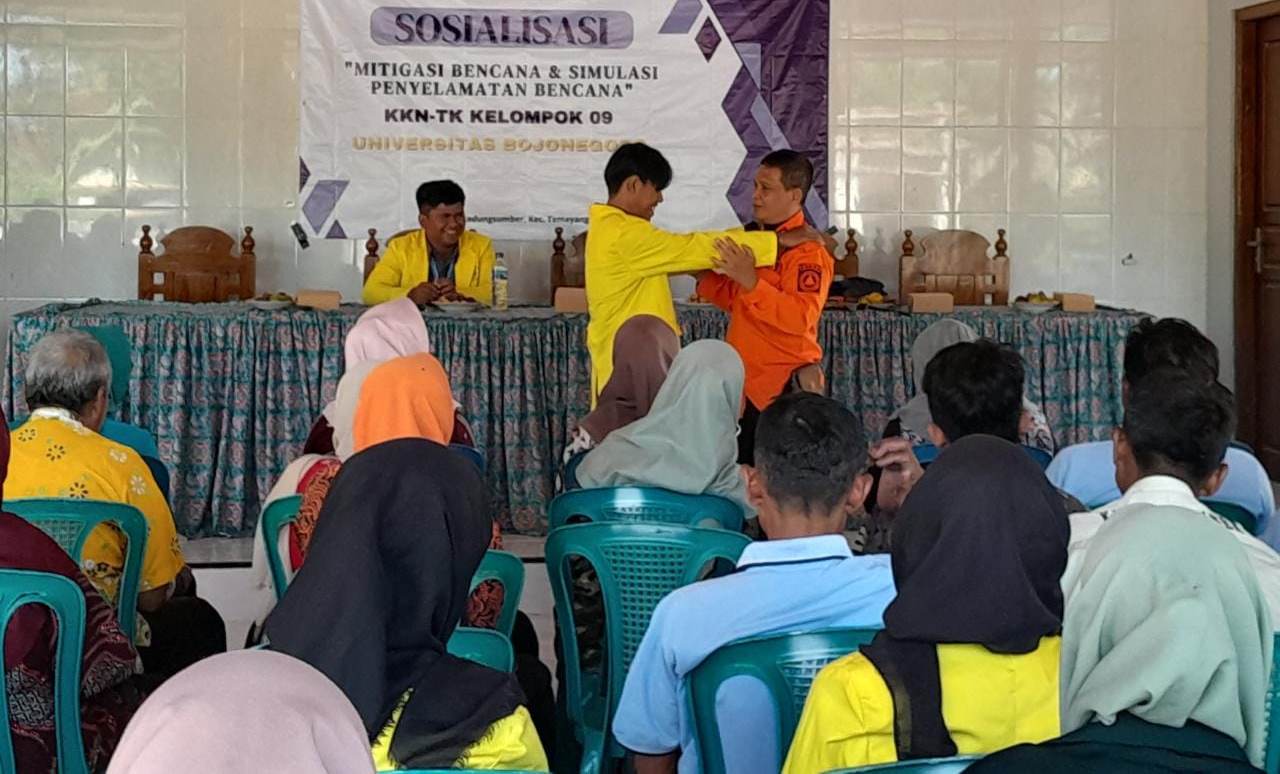 Sementara itu, Kepala Desa Kedungsumber, Kardi berharap kegiatan soialisasi mitigasi bencana yang diadakan oleh tim KKNT 09 Unigoro dan BPBD ini dapat memberikan pengetahuan bagi masyarakat mengenai tindakan penyelamatan yang harus dilakukan. “Selain itu juga dapat menjawab persoalan-persoalan bencana yang terjadi di Desa Kedungsumber,” pungkasnya. (ST10)