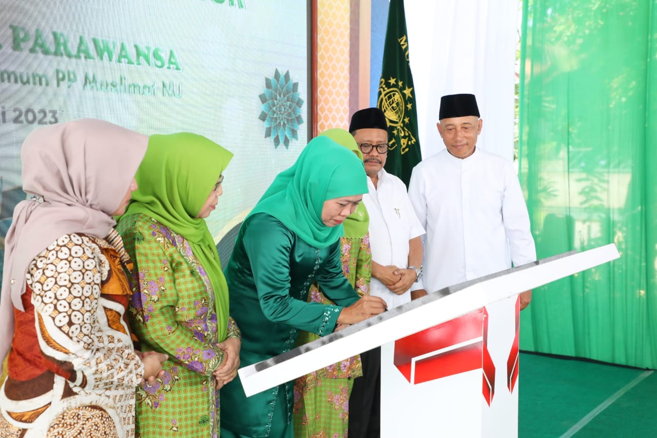 Peresmian gedung dua lantai tersebut ditandai dengan penandatanganan prasasti oleh Gubernur Khofifah didampingi Wakil Ketua DPRD Jatim Anik Maslahah, Sekretaris Umum PP Muslimat NU Ulfa Masfufah, Ketua Ta’awun Kantor PW Muslimat NU Jatim Prof. Masud, Ka. Kwarda Pramuka Jatim H. Arum Sabil beserta Ketua PW Muslimat Jatim Hj. Masruroh Wahid.