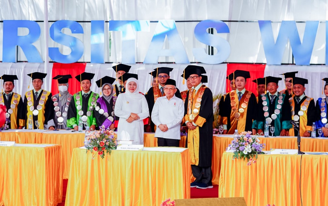 Gubernur Jawa Timur Khofifah Indar Parawansa mendampingi Wakil Presiden RI KH. Ma’ruf Amin di Dies Natalis ke 37 Universitas Wiraraja, Sumenep.