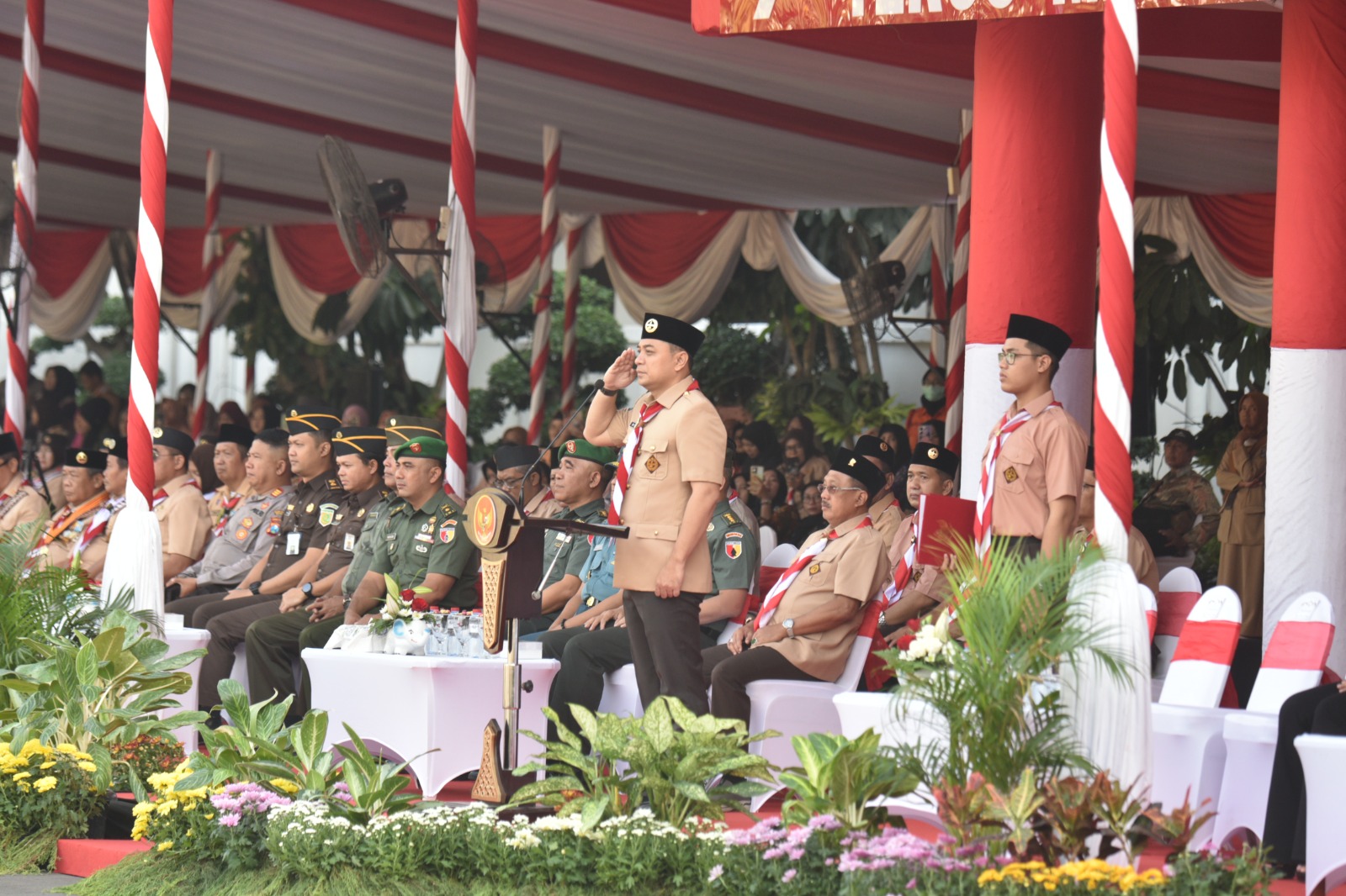 “Pada tahun ini sekaligus kita memperingati 111 tahun keberadaan gerakan kepanduan di bumi Indonesia yang telah ada sejak tahun 1912,” kata Wali Kota Eri membacakan sambutan Ketua Kwartir Nasional Gerakan Pramuka.
