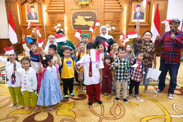 Total ada 42 anak terpilih yang tertangkap kamera diundang Gubernur Khofifah ke Gedung Grahadi bersama orang tuanya. “Seperti tahun lalu, anak-anak yang terpotret atau tercapture kami undang ke sini. Undangan ini merupakan apresiasi Pemprov Jatim kepada anak-anak beserta orang tuanya yang turut mengikuti upacara HUT ke 78 RI,” jelas Khofifah.