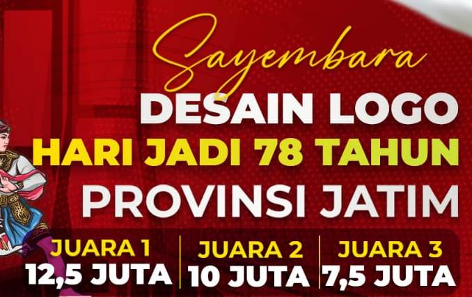 SURABAYATODAY.ID, SURABAYA – Pemerintah Provinsi Jawa Timur menggelar Sayembara Desain Logo Peringatan Hari Jadi Provinsi Jawa Timur yang ke-78 tahun 2023. Lomba desain logo kali ini merupakan kali kedua digelar Pemprov Jatim sebagai rangkaian Peringatan Hari Jadi, dan sifatnya terbuka untuk semua kalangan. Baik pelajar, mahasiswa, masyarakat umum, maupun profesional.