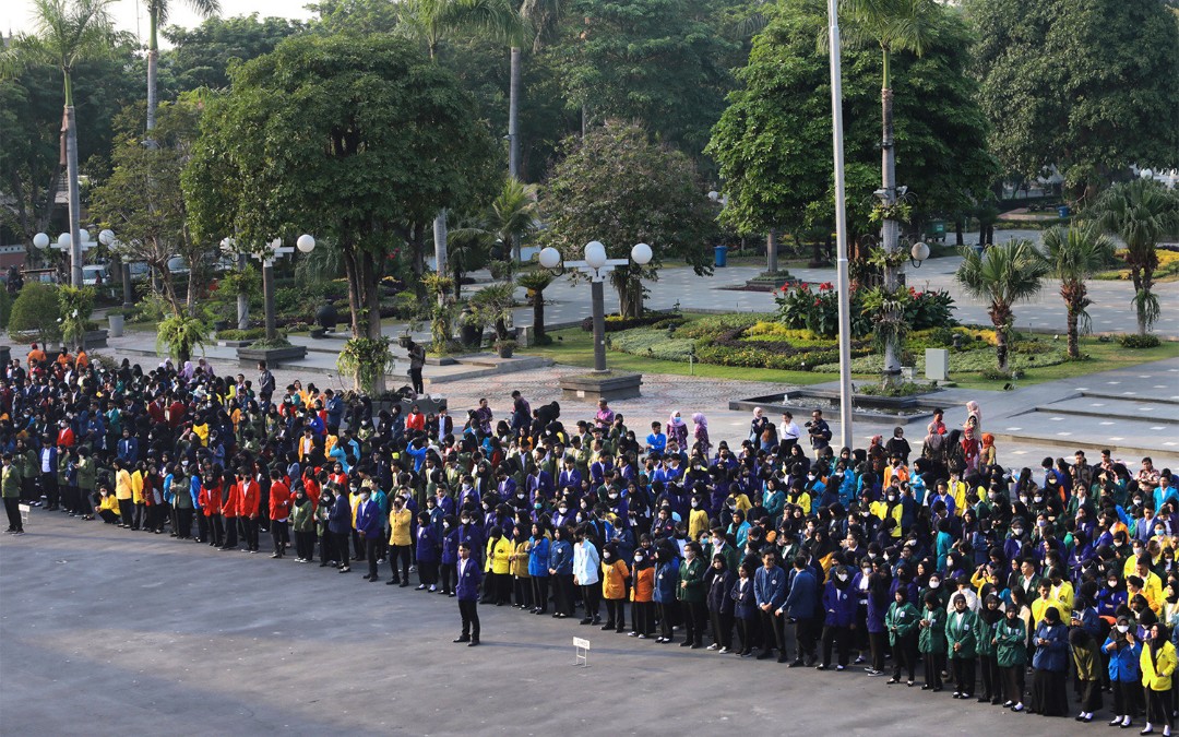 Ribuan mahasiswa mengikuti Apel Penugasan MSIB di halaman Taman Surya.