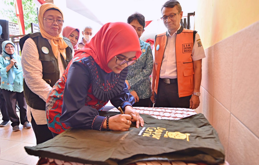 Ketua Tim Penggerak PKK Kota Surabaya Rini Indriyani meresmikan Dapur Ceria di Kupang Panjaan 4, RT 05/ RW 04, Kelurahan Dr. Soetomo, Kecamatan Tegalsari.