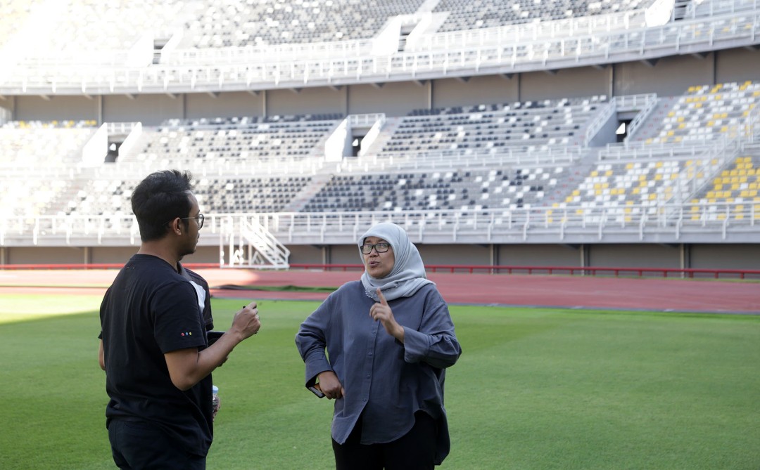 “Tadi mereka mengecek lapangan, SOP masuk lapangan, mengecek press room dan media center serta beberapa tempat lainnya, termasuk fasilitas parkir yang sedang kami siapkan itu,” kata Wiwiek di sela-sela menerima kunjungan dari tim PSSI.