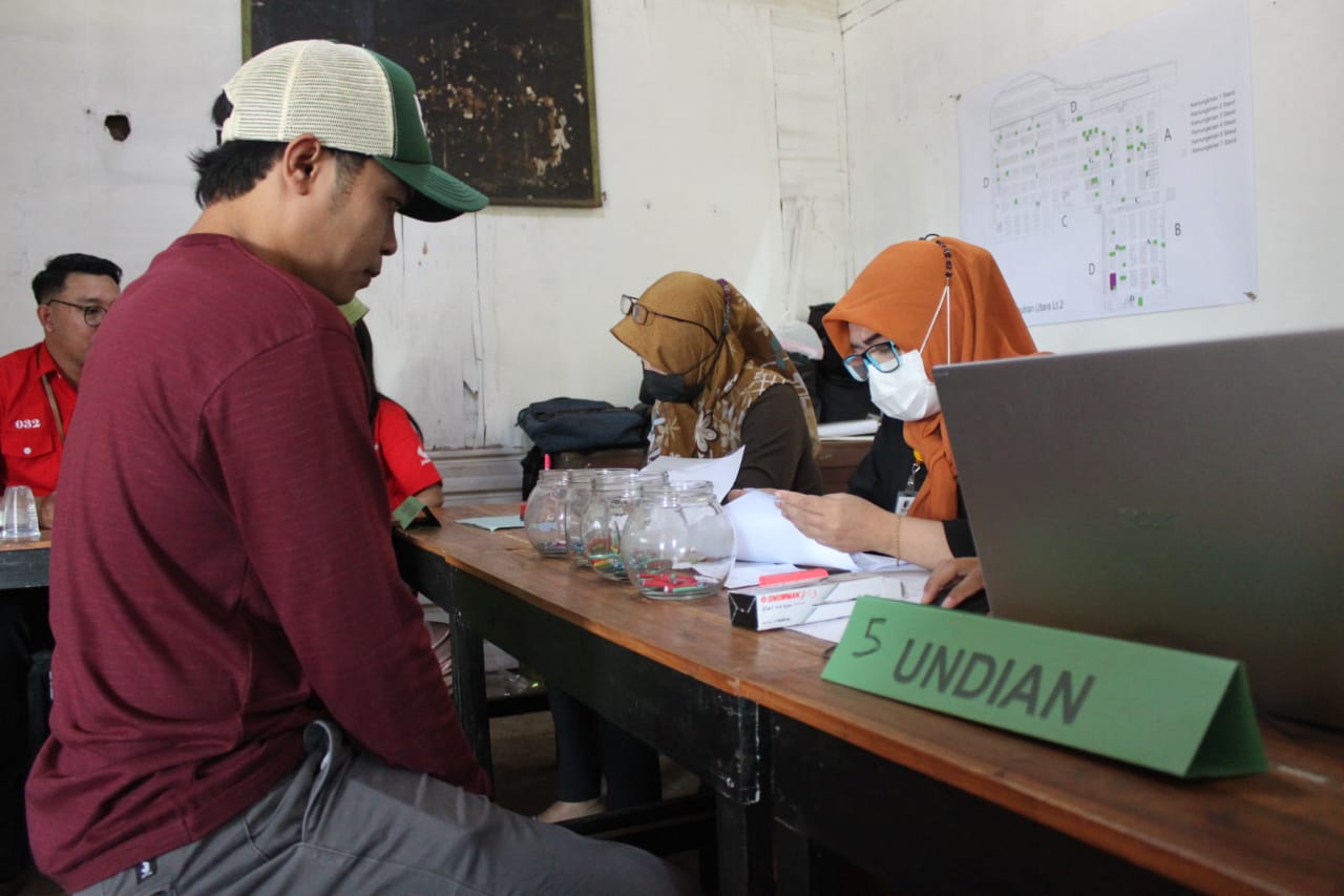 Dikatakan, proses pengundian dimulai dari registrasi calon pedagang. Registrasi dimulai dengan mencocokkan data calon pedagang dengan data yang sudah terekap di formulir pendaftaran. Setelah data cocok, calon pedagang menuju ke meja zonasi untuk memvalidasi jenis jualan.