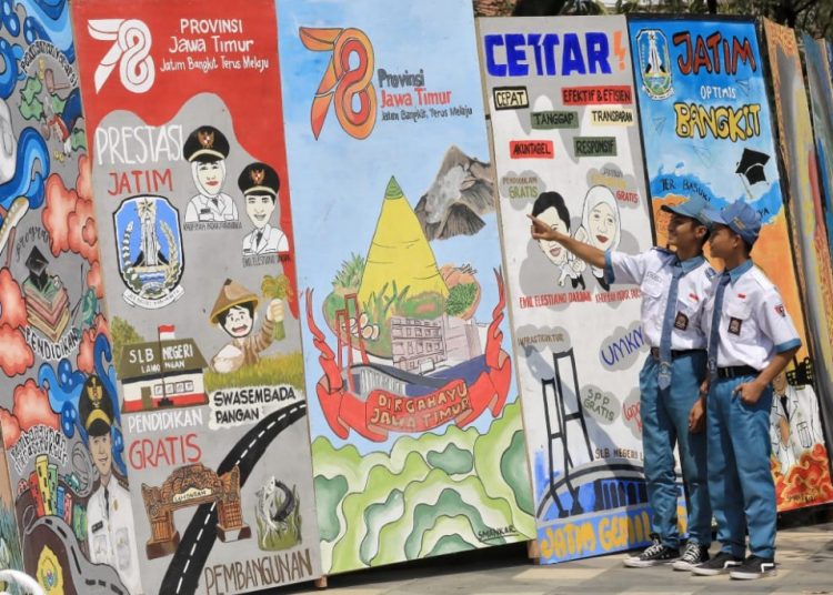 SURABAYATODAY.ID, SURABAYA – Gubernur Jatim Khofifah Indar Parawansa memimpin upacara peringatan Hari Jadi ke-78 Provinsi Jatim di Halaman Gedung Negara Grahadi Surabaya, Kamis (12/10). Ia menyatakan dalam proses pembangunan, Jatim berpegang pada prinsip ‘no one left behind’, atau tidak ada satupun yang akan ditinggalkan. Melalui berbagai upaya tersebut, banyak keberhasilan yang telah diraih Provinsi Jatim.