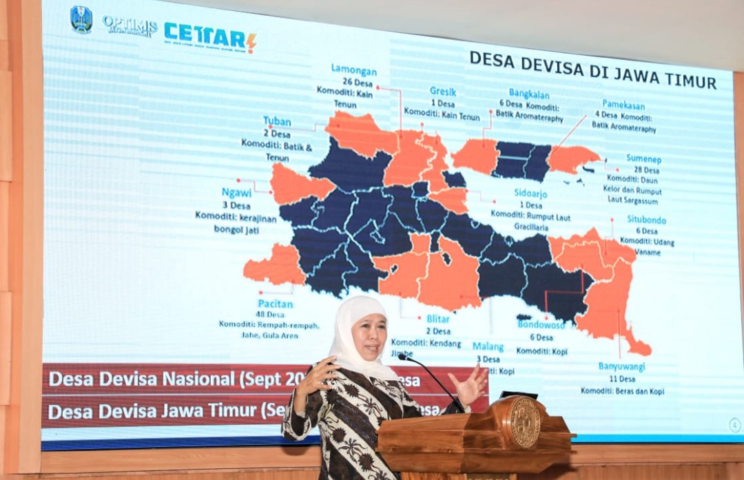 Khofifah menambahkan, kekuatan Jatim ini juga ditunjang dengan keberadaan Desa Devisa di Jawa Timur. Dimana, per September 2023 tercatat 149 Desa Devisa berada di Jawa Timur dari total 613 Desa Devisa di Indonesia.