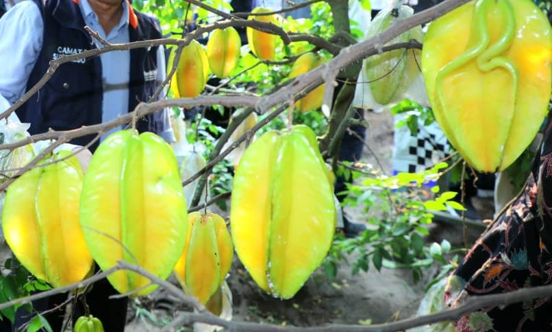 Khofifah juga melakukan petik belimbing berukuran besar berwarna orange. Yang mana hal itu sebagai ciri khas Belimbing jenis Karangsari Merah yang juga merupakan ikon Kota Blitar.