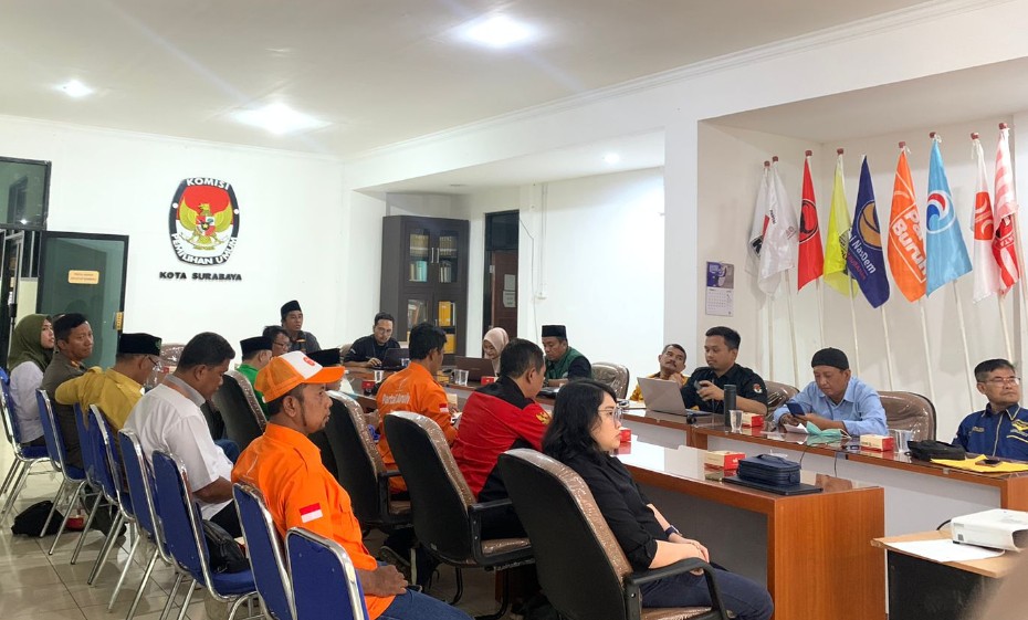SURABAYATODAY.ID, SURABAYA – KPU Surabaya menyelenggarakan sosialisasi Peraturan KPU Nomor 15 Tahun 2023 dan Peraturan KPU Nomor 20 Tahun 2023 tentang Kampanye Pemilu Tahun 2024. Kegiatan yang berlangsung di kantor KPU Surabaya ini dihadiri oleh Pimpinan dan Petugas Penghubung Partai Politik Peserta Pemilu 2024 dan jajaran Pemerintah Kota Surabaya, seperti Badan kesatuan Bangsa dan Politik, Satuan Polisi Pamong Praja, serta Bagian Pemerintahan dan Kesejahteraan Rakyat. Hadir juga perwakilan dari Polrestabes Surabaya.