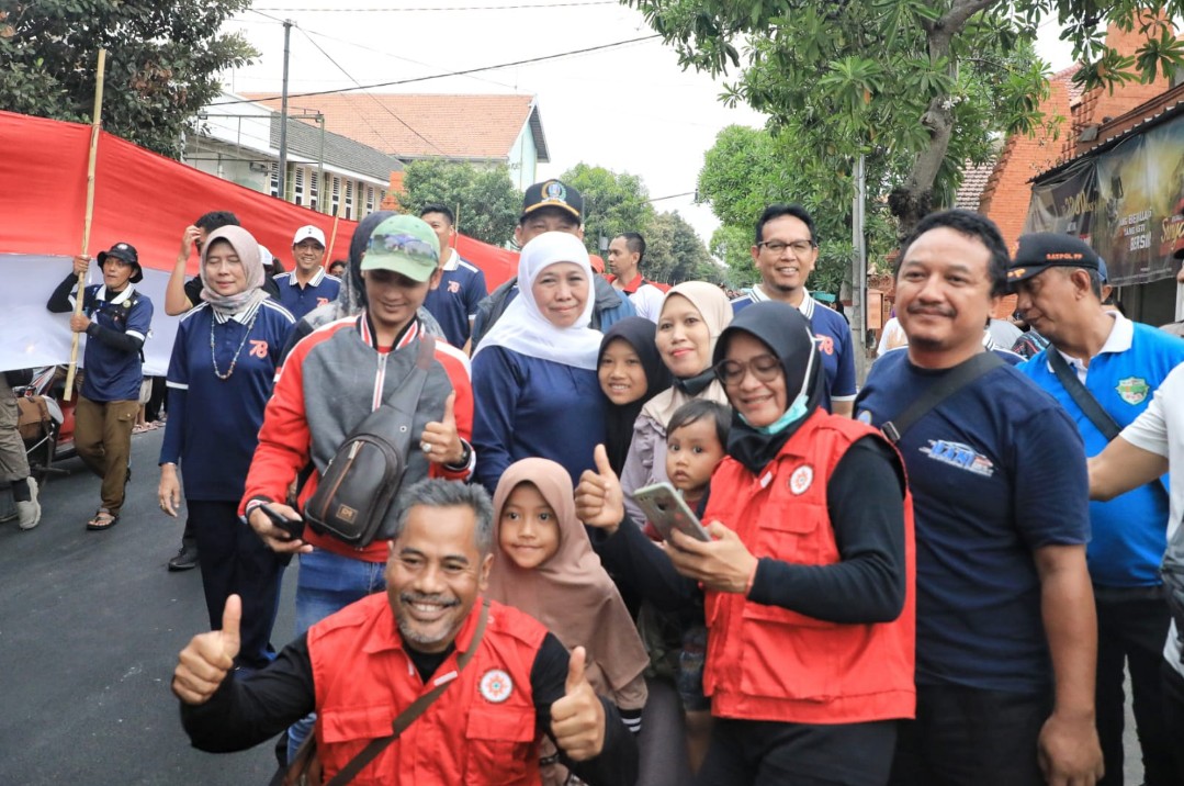 Usai melepas, Gubernur Khofifah bersama Walikota Mojokerto Ika Puspitasari, Bupati Mojokerto Ikfina Fatmawati, Sekdaprov Jatim Adhy Karyono, Forkopimda Kota Mojokerto, dan beberapa Kepala OPD Pemprov Jatim ikut berjalan bersama peserta melewati rute pendek dan finish di Pendopo Graha Majatama Kota Mojokerto.