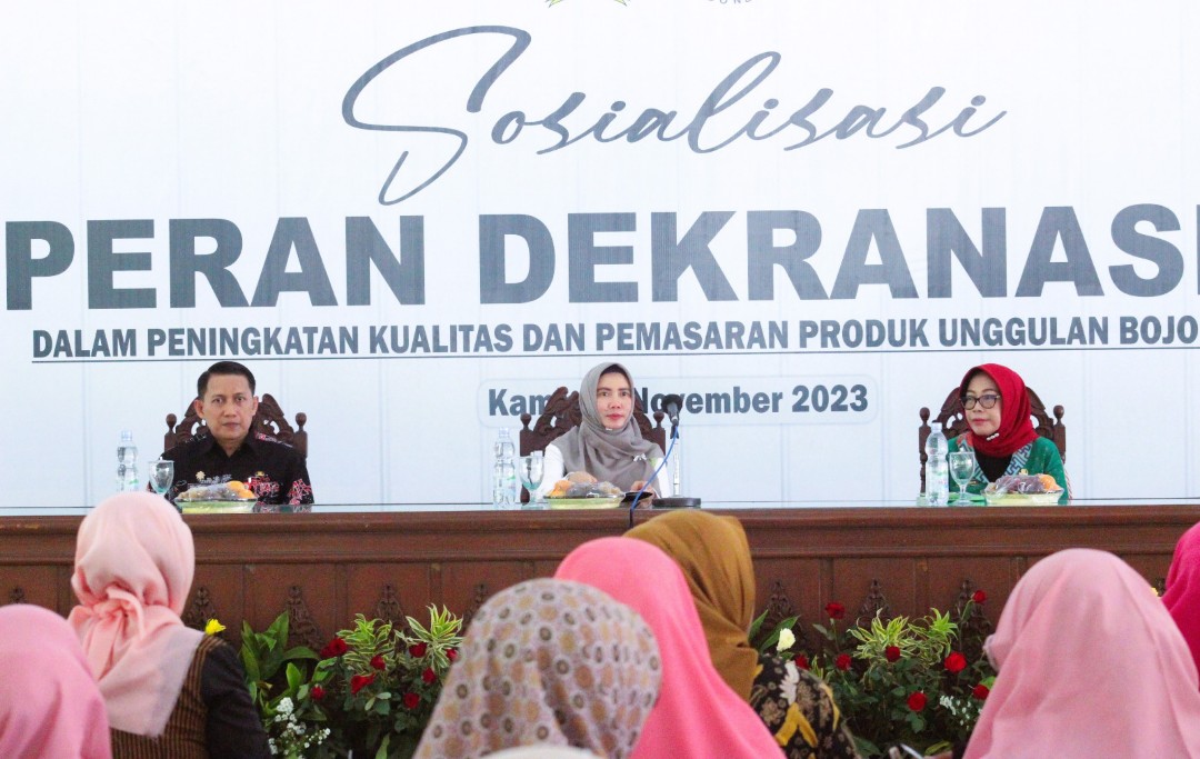 Penegasan ini disampaikan Ketua Dekranasda Bojonegoro Dian Adiyanti Adriyanto saat sosialisasi Peran Dekranasda dalam Peningkatan Kualitas dan Pemasaran Produk Bojonegoro Tahun 2023 bersama pelaku UMKM di Pendopo Malowopati, Kamis (9/11)
