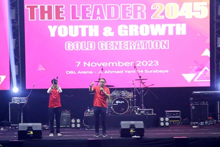 Wali Kota Surabaya Eri Cahyadi membakar semangat para pemuda dan pemudi Surabaya di acara The Leader 2045, Selasa (7/11/2023) malam. Acara yang digelar oleh Pemerintah Kota (Pemkot) Surabaya bersama Karang Taruna Surabaya di DBL Arena itu dihadiri sebanyak 5 ribu pemuda dan pemudi Surabaya dari berbagai organisasi kepemudaan, mulai dari perwakilan Karang Taruna se Surabaya, paskibraka, Cipayung plus dan berbagai organisasi pemuda lainnya.