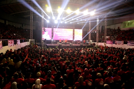 Ribuan pemuda dan pemudi Surabaya dari berbagai organisasi kepemudaan menghadiri acara The Leader 2045 di DBL Arena.