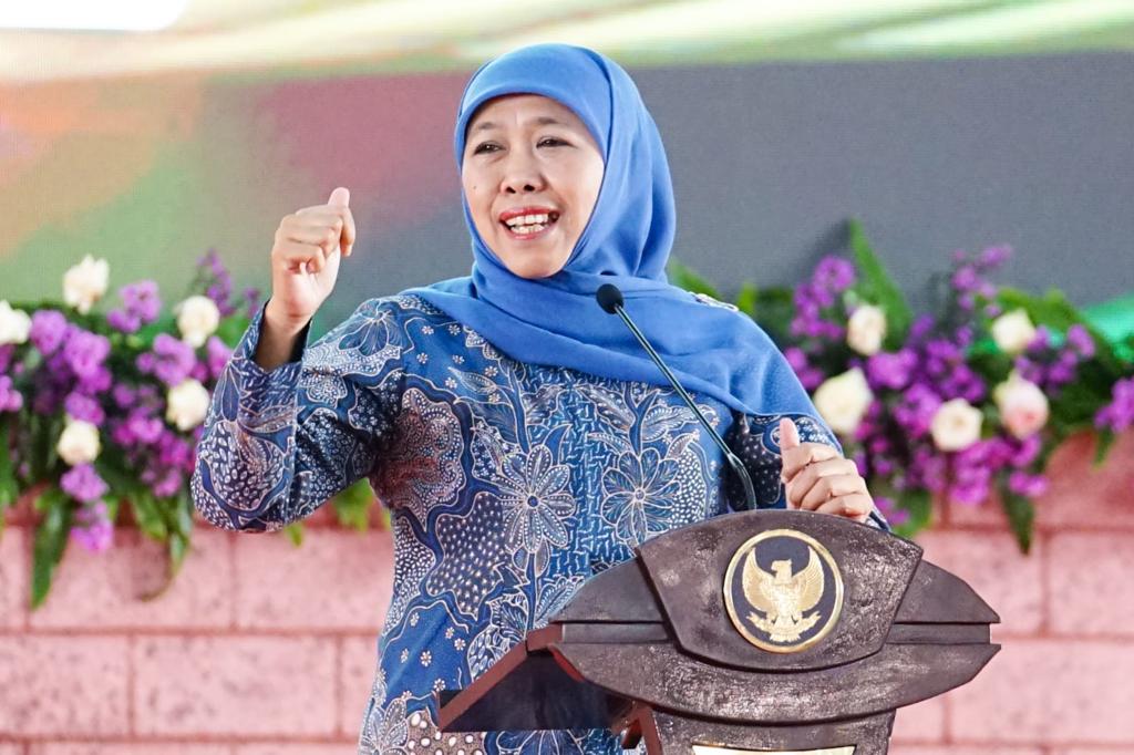 Gubernur Jawa Timur Khofifah Indar Parawansa  di sela peresmian hunian sementara Kinasih Indah Persada di Desa Ngrandu, Kecamatan Suruh, Kabupaten Trenggalek.
