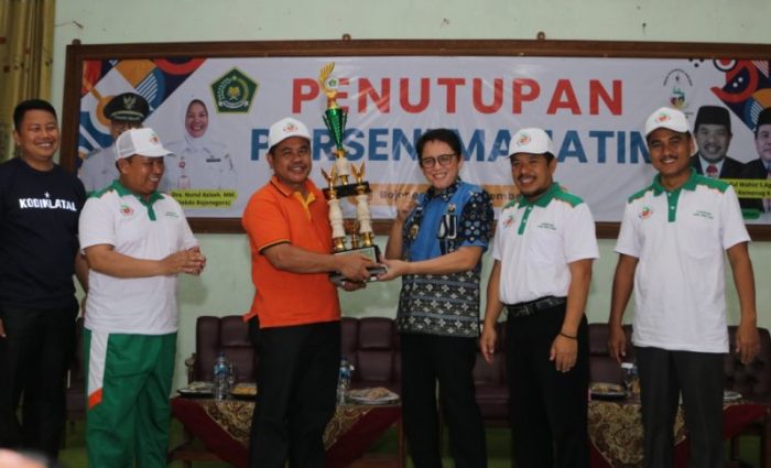 Raih Juara Umum Porseni MA Se-Jatim, Pj Bupati Adriyanto Berikan Tropi pada Kepala Kemenag Bojonegoro