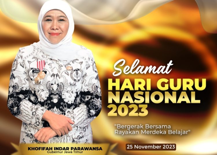 “Guru memegang peran kunci bagaimana generasi muda bangsa ini dibentuk, jadi generasi emas untuk mewujudkan Indonesia emas 2045 sangat ditentukan bagaimana kualitas pendidikan saat ini,” tegas Gubernur Khofifah di peringatan Hari Guru Nasional 2023 yang jatuh hari ini, Sabtu (25/11).