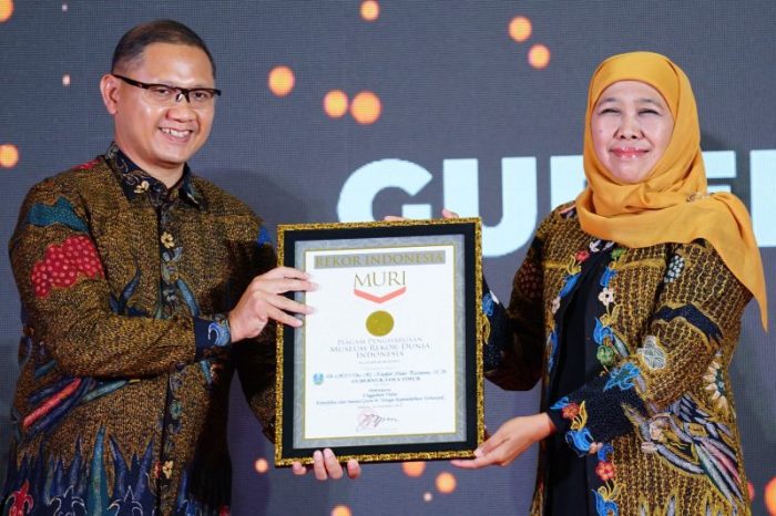 Kedua penghargaan tersebut diserahkan langsung oleh Direktur Operasional MURI Yusuf Ngadri pada Gubernur Khofifah.