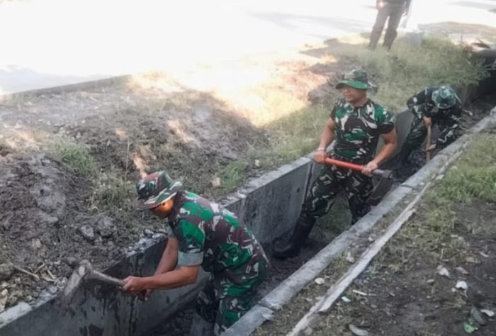 “Kita lakukan pengerukan saluran air ini, dan pembersihan sampah-sampah yang menyumbat,” ungkap Bati Tuud Koramil 0813-04/Sugihwaras, Peltu Junaidi, saat memimpin kegiatan karya bakti ini.