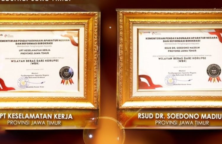 SURABAYATODAY.ID, SURABAYA – Pemerintah Provinsi Jawa Timur kembali menerima penghargaan dari pemerintah pusat. Kali ini, dua unit kerja Pemprov Jatim mendapat penghargaan Zona Integritas (ZI) dengan memperoleh predikat Wilayah Bebas dari Korupsi (WBK) Tahun 2023.
