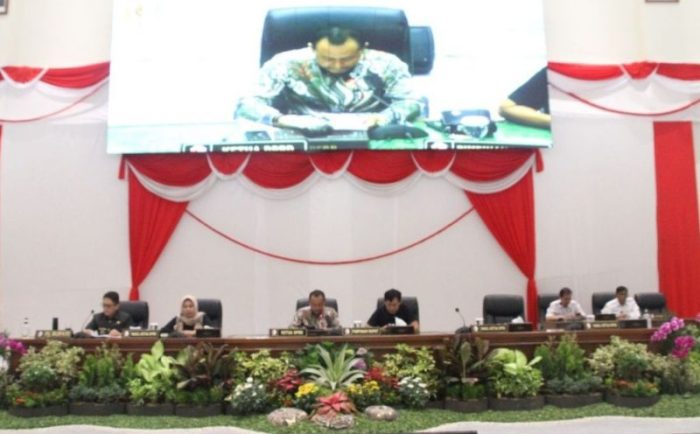 Rapat dipimpin Ketua DPRD Abdulloh Umar, didampingi dua Wakil Ketua DPRD yakni Sukur Priyanto dan Mitro’atin.