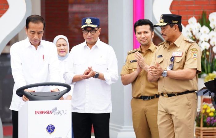 SURABAYATODAY.ID, PURWOREJO – Pelaksana Tugas (Plt) Gubernur Jawa Timur Emil Elestianto Dardak mendampingi Presiden RI Joko Widodo (Jokowi) meresmikan Terminal Tipe A Purboyo Kota Madiun dan Terminal Tipe A Patria Kota Blitar di Terminal Tipe A Purworejo, Jawa Tengah, Selasa (2/1). Selain meresmikan dua terminal Tipe A yang berada di wilayah Jatim, Presiden Jokowi juga meresmikan dua terminal yang berada di wilayah Jawa Tengah yakni Terminal Tipe A Purworejo dan Terminal Tipe A Mendolo yang ada di Kab. Wonosobo.