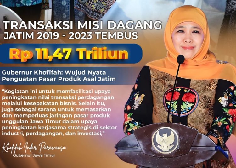 SURABAYATODAY.ID, SURABAYA – Pemerintah Provinsi Jawa Timur di bawah kepemimpinan Gubernur Khofifah Indar Parawansa selama 2019 – 2023 mencatatkan nilai transaksi misi dagang baik dalam dan luar negeri Rp 11,47 triliun.