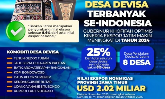 “Program desa devisa menjadi salah satu upaya untuk memaksimalkan ekspor komoditas unggulan Jatim,” katanya, Senin (8/1).