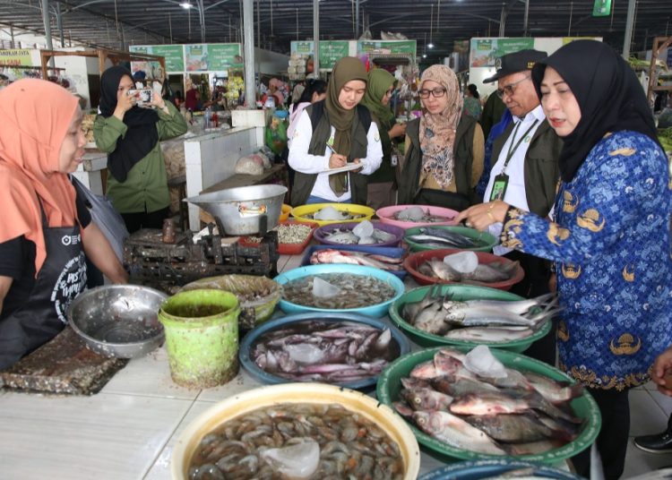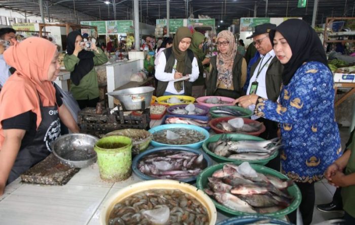 Dengan terpilihnya Pasar Nambangan Surabaya, Badan Pangan Nasional melalui Kedeputian Penganekaragaman Konsumsi dan Keamanan Pangan melakukan inspeksi mendadak (sidak) di Pasar Nambangan Surabaya, Rabu (17/1). Didampingi Kepala Dinas Ketahanan Pangan dan Pertanian (DKPP) Antiek Sugiharti, beserta Kepala Dinas Koperasi Usaha Kecil dan Menengah dan Perdagangan (Dinkopumdag) Dewi Soeriyawati, langsung berkeliling mengambil uji sampel bahan pangan.