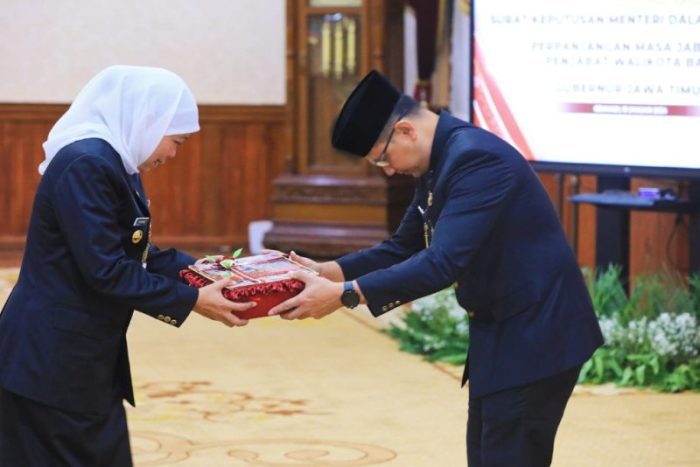 SURABAYATODAY.ID, SURABAYA – Gubernur Jawa Timur Khofifah Indar Parawansa menyerahkan Surat Keputusan Menteri Dalam Negeri Nomor 100.2.1.3-72 Tahun 2024 Tentang Perpanjangan Masa Jabatan Penjabat (Pj) Wali Kota Batu di Gedung Negara Grahadi, Surabaya, Kamis (18/1).