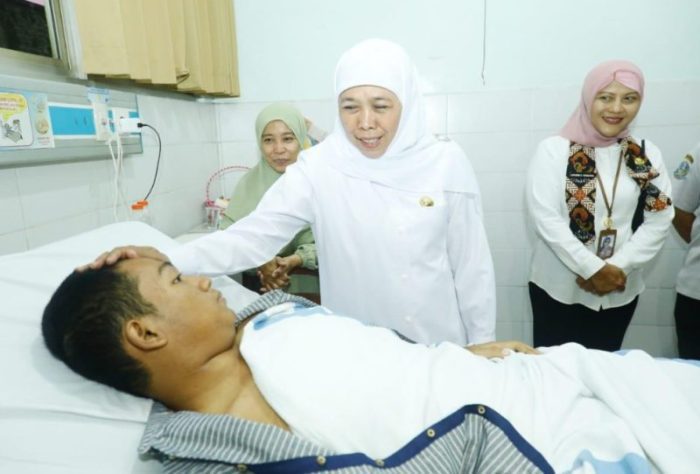 Tak berhenti di situ, Gubernur Khofifah juga melanjutkan dengan menjenguk siswa SMAN 1 Sidoarjo yang juga korban laka tersebut, Anzumil, yang tengah mendapatkan perawatan di RSUD Sidoarjo. Kepada Anzumil, Gubernur Khofifah juga memberikan semangat agar ia segera sembuh.
