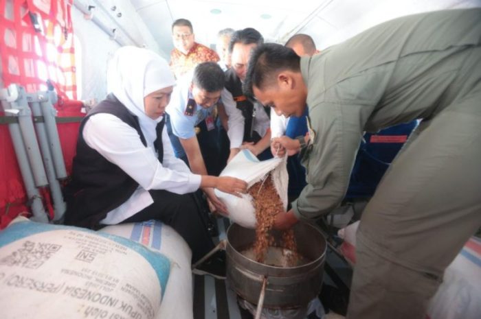 SURABAYATODAY.ID, MALANG – Gubernur Jawa Timur Khofifah Indar Parawansa bersama Komandan Landasan Udara Abdulrachman Saleh Marsma TNI Firman Wirayuda melakukan penebaran benih melalui udara (aeroseeding) di wilayah terdampak kebakaran hutan dan lahan (karhutla) Arjuno-Welirang, Kamis (25/1).