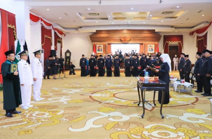 SURABAYATODAY.ID, SURABAYA – Gubernur Jawa Timur Khofifah Indar Parawansa melantik Rudi Arifiyanto sebagai Penjabat (Pj) Bupati Sampang dan Nurkholis sebagai Penjabat (Pj) Walikota Probolinggo. Pelantikan dilakukan di gedung Negara Grahadi Surabaya, Senin (30/1) malam.