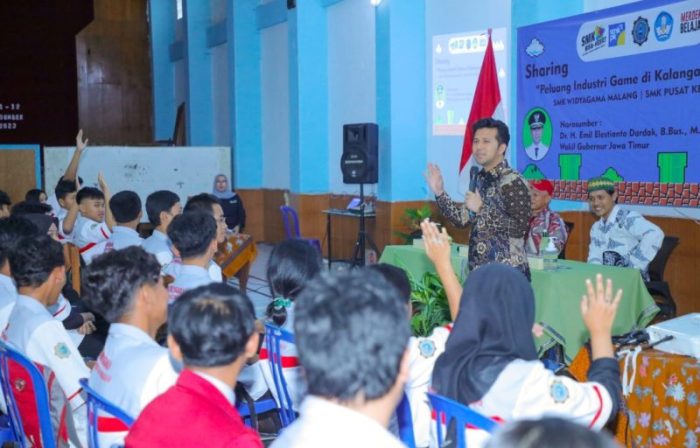 SURABAYATODAY.ID, MALANG – Wakil Gubernur Jawa Timur Emil Elestianto Dardak mengajak siswa SMK utamanya yang berbekal keterampilan di sektor industri kreatif dapat memanfaatkan peluang pengembangan industri game baik di tingkat nasional maupun internasional. Pasalnya, beragam inovasi yang dimiliki SMK bisa menjadi pendorong kemajuan Industri Game di Indonesia