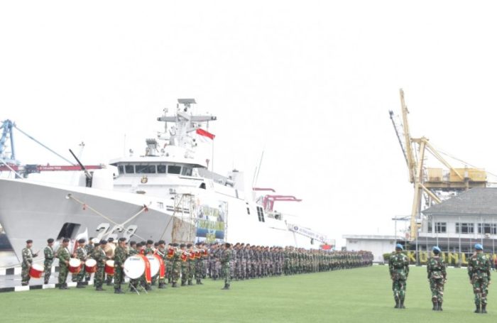 SURABAYATODAY ID, JAKARTA – Pangkoarmada II Laksda TNI Dr. Denih Hendrata didampingi Ketua Daerah Jalasenastri Armada II Ny. Kiki Denih Hendrata, menghadiri upacara penyambutan KRI Frans Kaisiepo-368 unsur Satuan Kapal Eskorta (Satkor) Koarmada II. KRI ini telah kembali dari mengemban misi perdamaian PBB dalam Satgas MTF TNI Konga XXVIII-N/UNIFIL Lebanon.