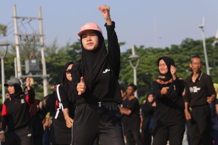 SURABAYATODAY.ID, SURABAYA – Pemerintah Kota (Pemkot) Surabaya bersama Kementerian Kesehatan Republik Indonesia (Kemenkes RI), petugas Kelompok Penyelenggara Pemungutan Suara (KPPS), Panitia Pemungutan Suara (PPS), Panitia Pemilihan Kecamatan (PPK), dan TNI/Polri menggelar senam sehat bugar serempak di seluruh kecamatan se-Surabaya, Jumat (9/2). Senam bertujuan menjaga kebugaran para petugas KPPS dan PPS sebelum penyelenggaraan Pemilu 14 Februari 2024 mendatang.
