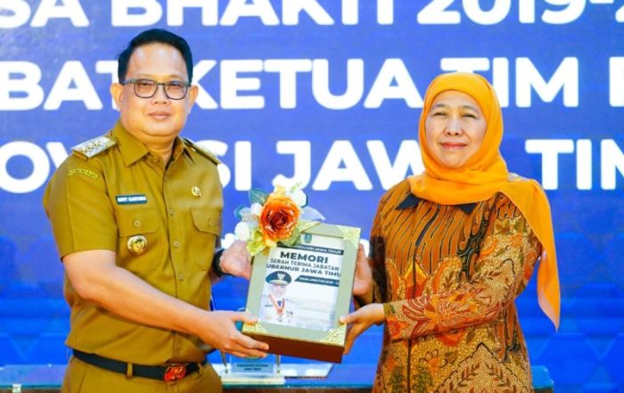 Pj Gubernur Jawa Timur Adhy Karyono bersama Gubernur Jawa Timur periode 2019-2024 Khofifah Indar Parawansa.